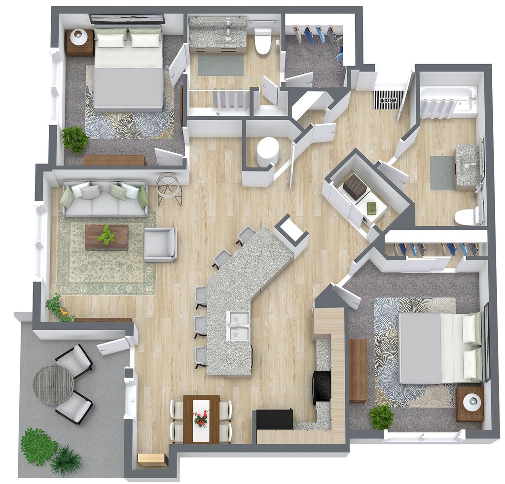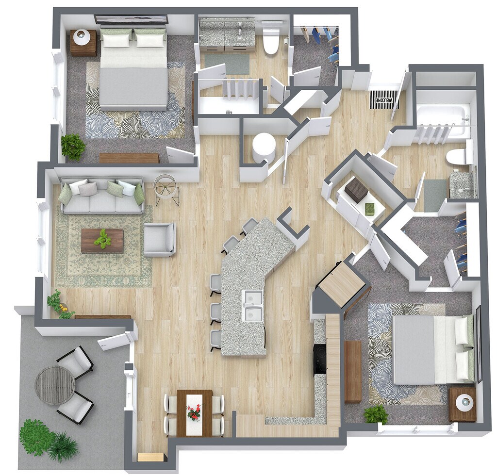 Modelo de apartamento: B3$1,3132 Dormitorios, 2 Baños, 1215 sq ftDisponible Ahora![]()