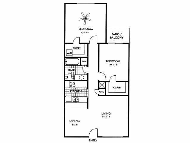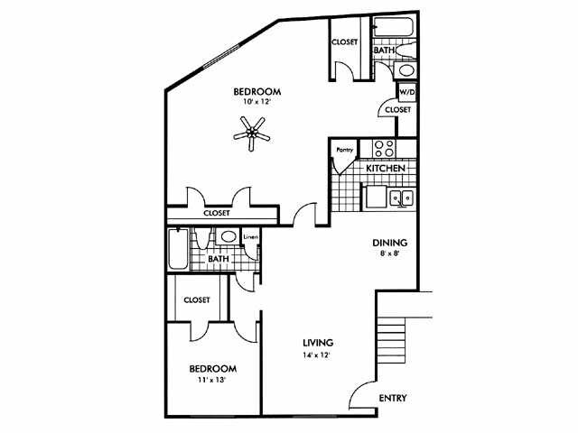 Modelo de apartamento: Rockridge Place M2 Dormitorios, 2 Baños, 919 sq ftNo DisponibleRockridge Place M - Plano 1 Rockridge Place Q