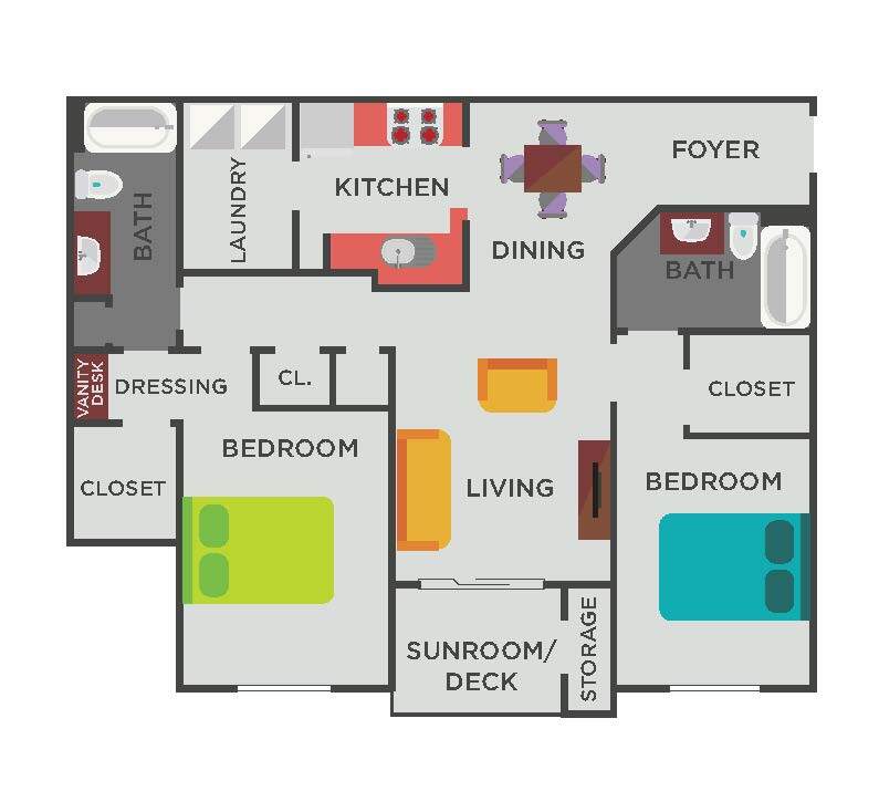 Modelo de apartamento: Two Bedroom2 Dormitorios, 2 Baños, 1264 sq ftDisponible Ahora![]()