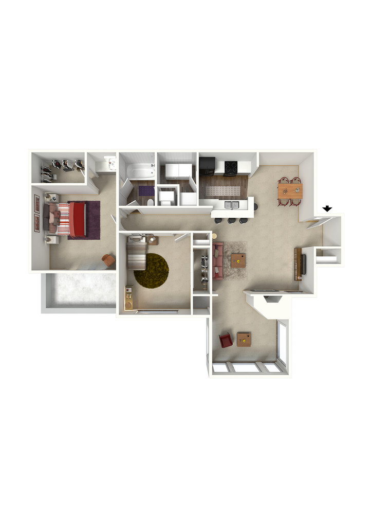 2 Dormitorios, 1 Baño, 1076 pies²Disponible AhoraGalería del Modelo