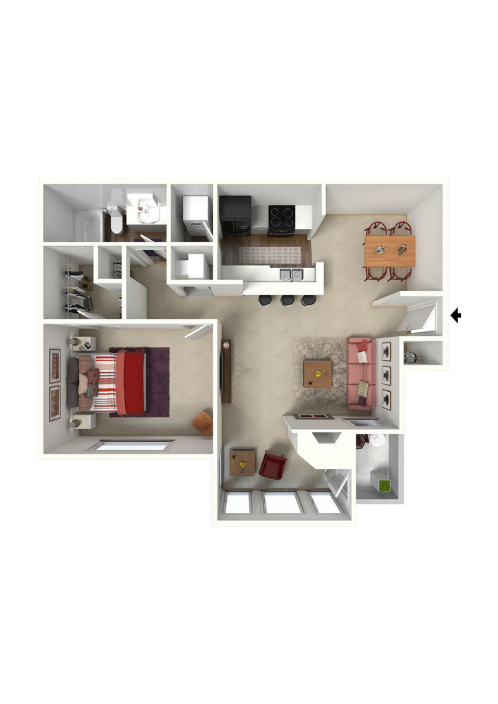 1 Dormitorio, 1 Baño, 766 pies²Disponible AhoraGalería del Modelo