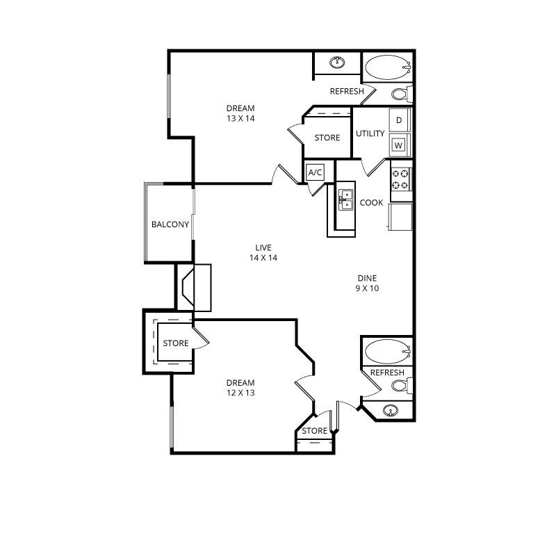 1 Dormitorio, 1 Baño, 750 pies²Disponible AhoraGalería del Modelo