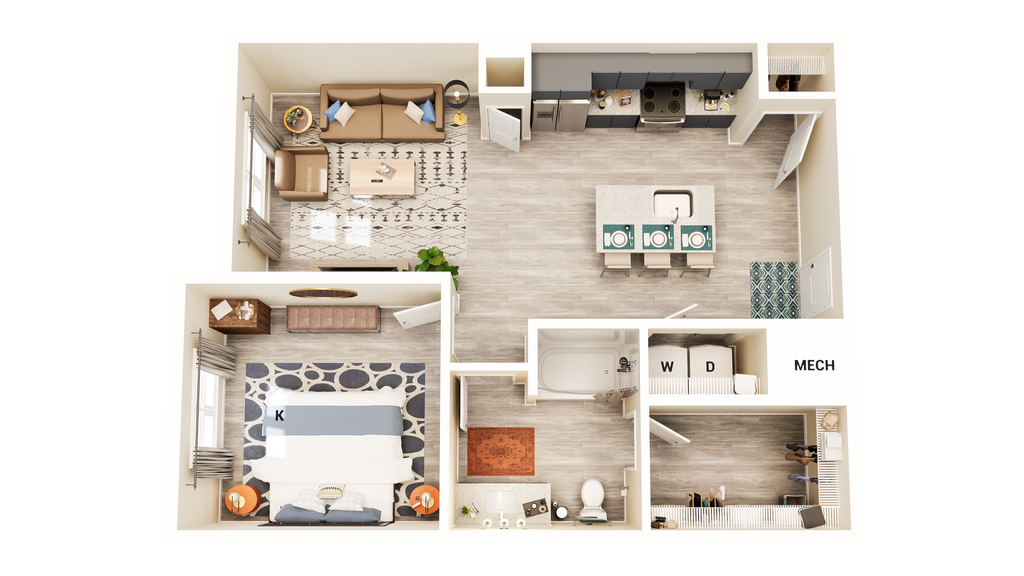 1 Dormitorio, 1 Baño, 810 pies²Disponible AhoraGalería del Modelo