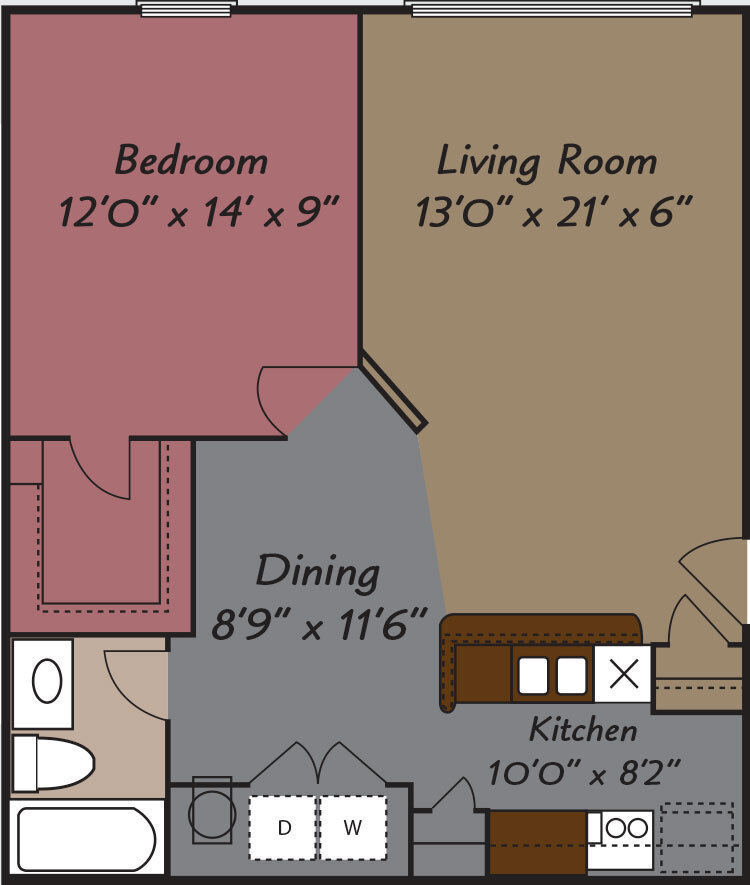 Modelo de apartamento: one bedroom/ one bath$9891 Dormitorio, 1 Baño, 800 sq ftDisponible Ahora![]()