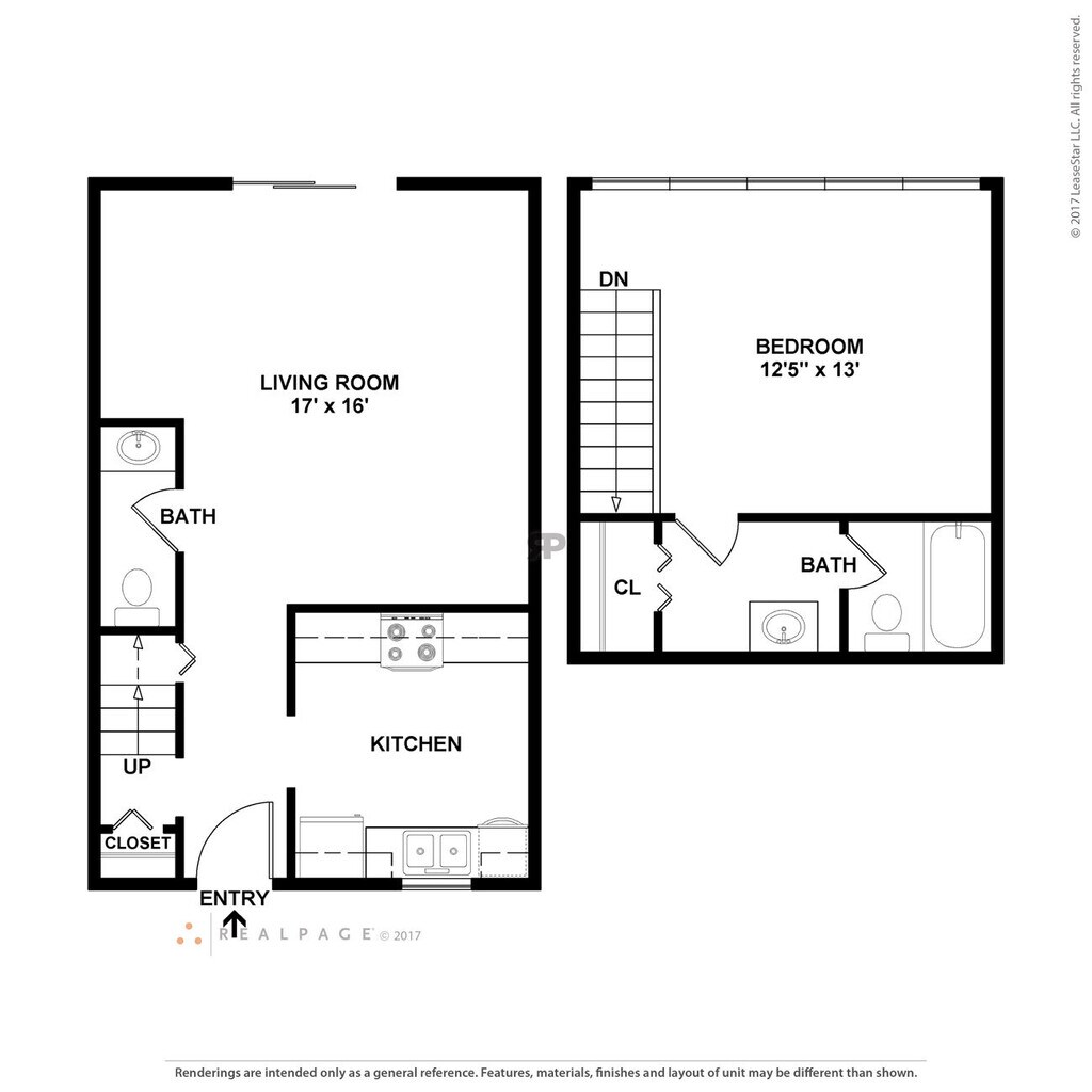 The Stratford - Plano 1 Los planos son representaciones artísticas. Todas las dimensiones son aproximadas. El producto y las especificaciones reales pueden variar en tamaño o detalle. No todas las características están disponibles en cada vivienda en alquiler. Por favor, consulta con un representante para obtener más detalles.