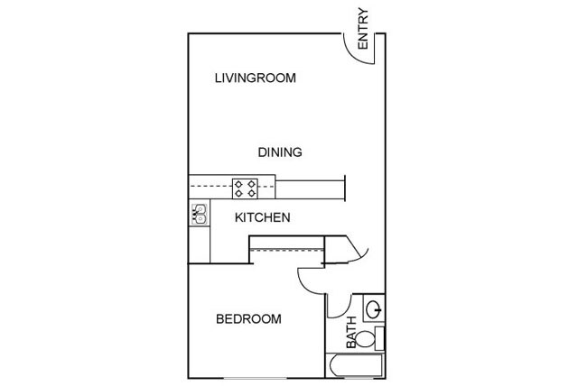 1 Dormitorio, 1 Baño, 595 pies²Galería del Modelo