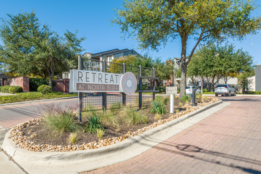 RETREAT AT NORTH BLUFF se encuentra en el Barrio Sweetbriar y el código postal 78745 de Austin, TX. Esta comunidad está gestionada profesionalmente por The Tipton Group