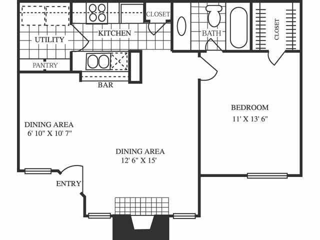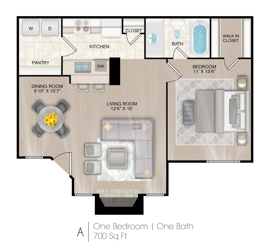 1 Dormitorio, 1 Baño, 700 pies²Disponible AhoraGalería del Modelo