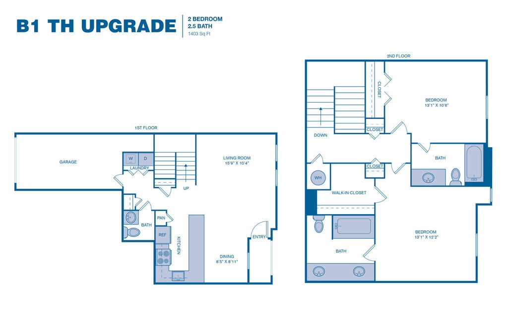 2 Beds, 2.5 Baths, 1403 sq ftModel Gallery