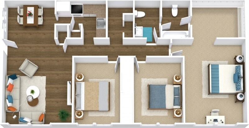 The Caribbean - Floorplan 2 Apartment Unit: 214Apartment Model: The Caribbean$1,3982 Bedroom, 2 Bath, 1100 sq ftAvailable December 14, 20253 Bedrooms