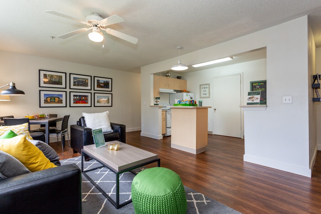 July 25, 2018These apartments are located in a neighborhood near Autzen Stadium that is really popular with UofO and LCC students. The bus routes are very convenient because they run directly to the campus. Stadium Park is a nice open property with a lot of open grassy courtyards and a nice pool and beach volleyball court. The apartments have really nice hardwood floors. The utility billing is really convenient, one bill covers everything so you don't have to set up service with cable & internet and things ...like that. The people that work there are are really friendly and helpful, and they give away a lot of free food. One issue with the apartment is due to the location next to Autzen, game days get crazy in the whole neighborhood. It is a lot of fun, but the neighborhood basically closes down during games so don't plan on driving anywhere for a few hours. The good part is that you can literally hear the people cheering in the stadium from your apartment, and is good for tailgating!Leer MásReseña de Apartments.com