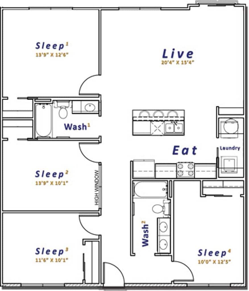 Unidad: 100 - Imagen 10 Unidad de apartamento: 306Modelo de apartamento: 4BR/2.0BA4 Dormitorios, 2 Baños, 1402 sq ftDisponible Ahora![]()