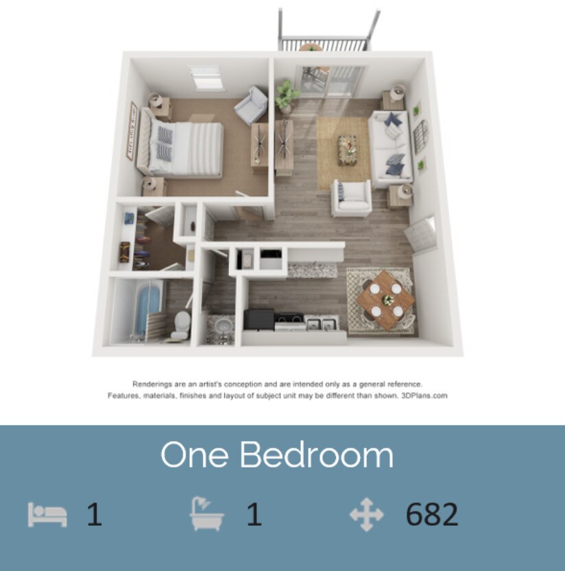 1 Dormitorio, 1 Baño, 682 pies²Disponible AhoraGalería del Modelo