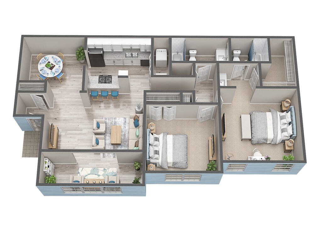 2 Dormitorios, 2 Baños, 1200 pies²Disponible AhoraGalería del Modelo