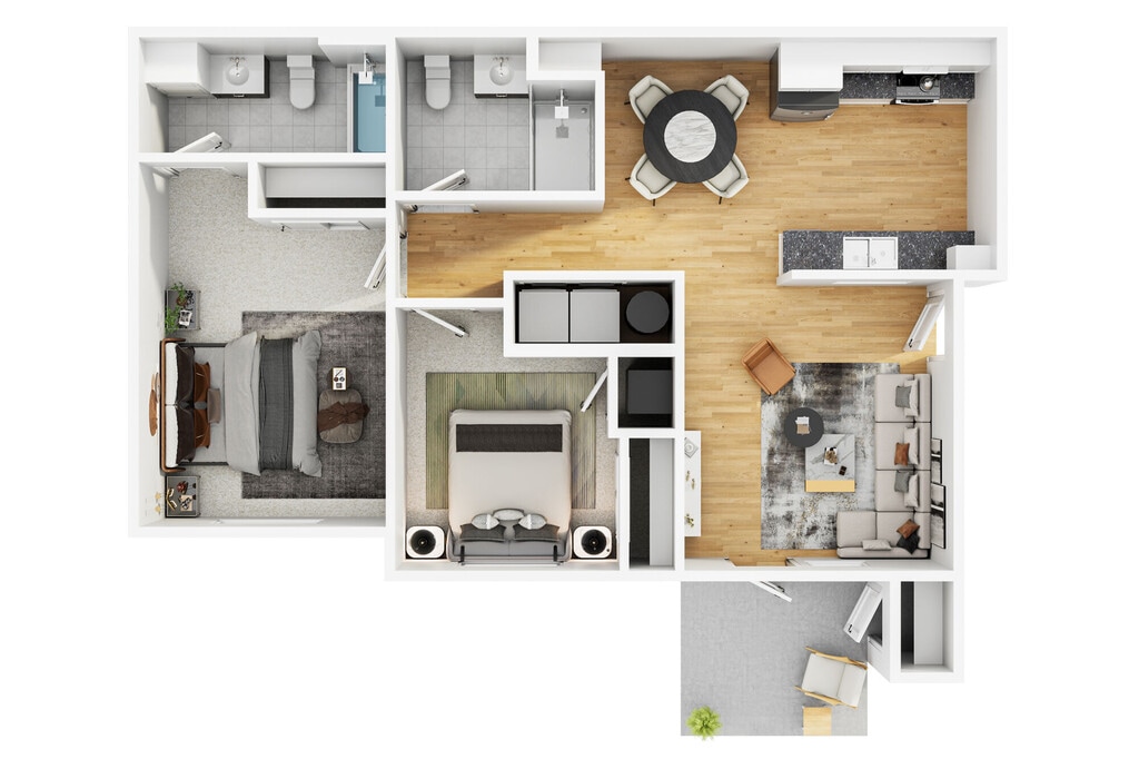 Modelo de apartamento: NewtonDesde $6793 Dormitorios, 2 Baños, 1077 sq ftDisponible Ahora![]()