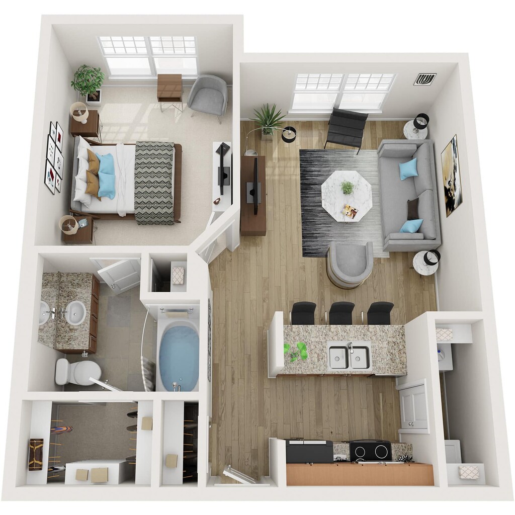 1 Dormitorio, 1 Baño, 900 pies²Disponible AhoraEl más grandeEsta opción tiene las unidades más grandes para este modeloGalería del Modelo