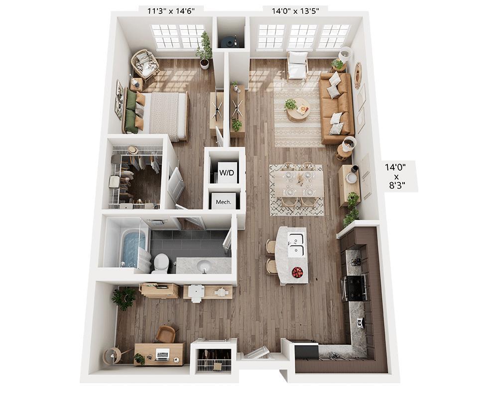 1 Dormitorio, 1 Baño, 811 pies²Disponible AhoraGalería del Modelo