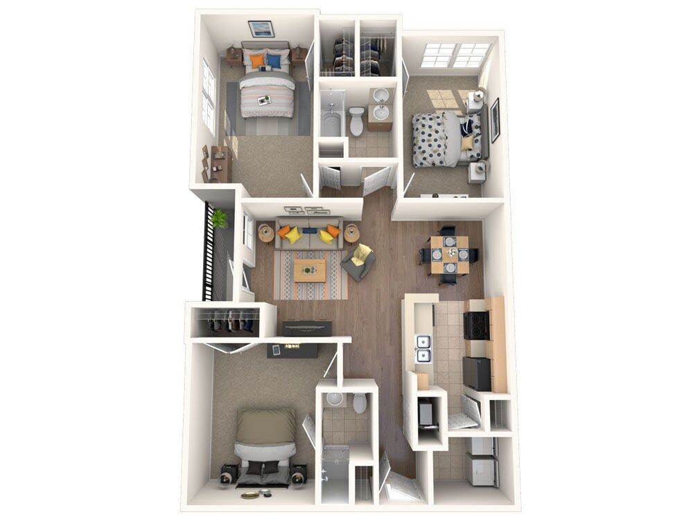 3 Dormitorios, 2 Baños, 1249 pies²Disponible AhoraGalería del Modelo