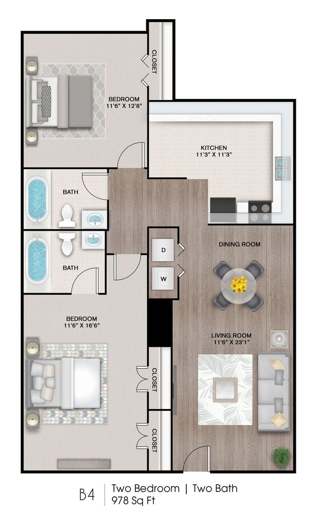 2 Dormitorios, 2 Baños, 978 pies²El más grandeEsta opción tiene las unidades más grandes para este modeloGalería del Modelo