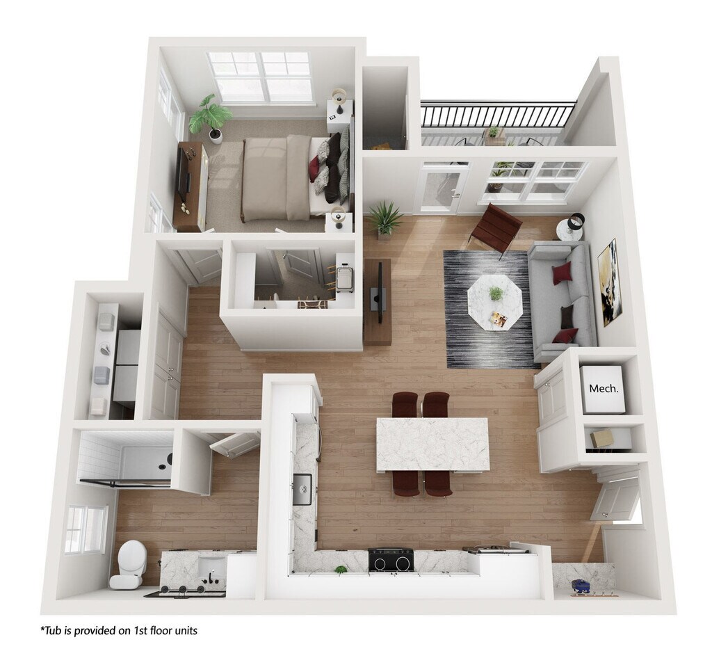 1 Dormitorio, 1 Baño, 865 pies²Precio Mensual TotalDisponible AhoraGalería del Modelo