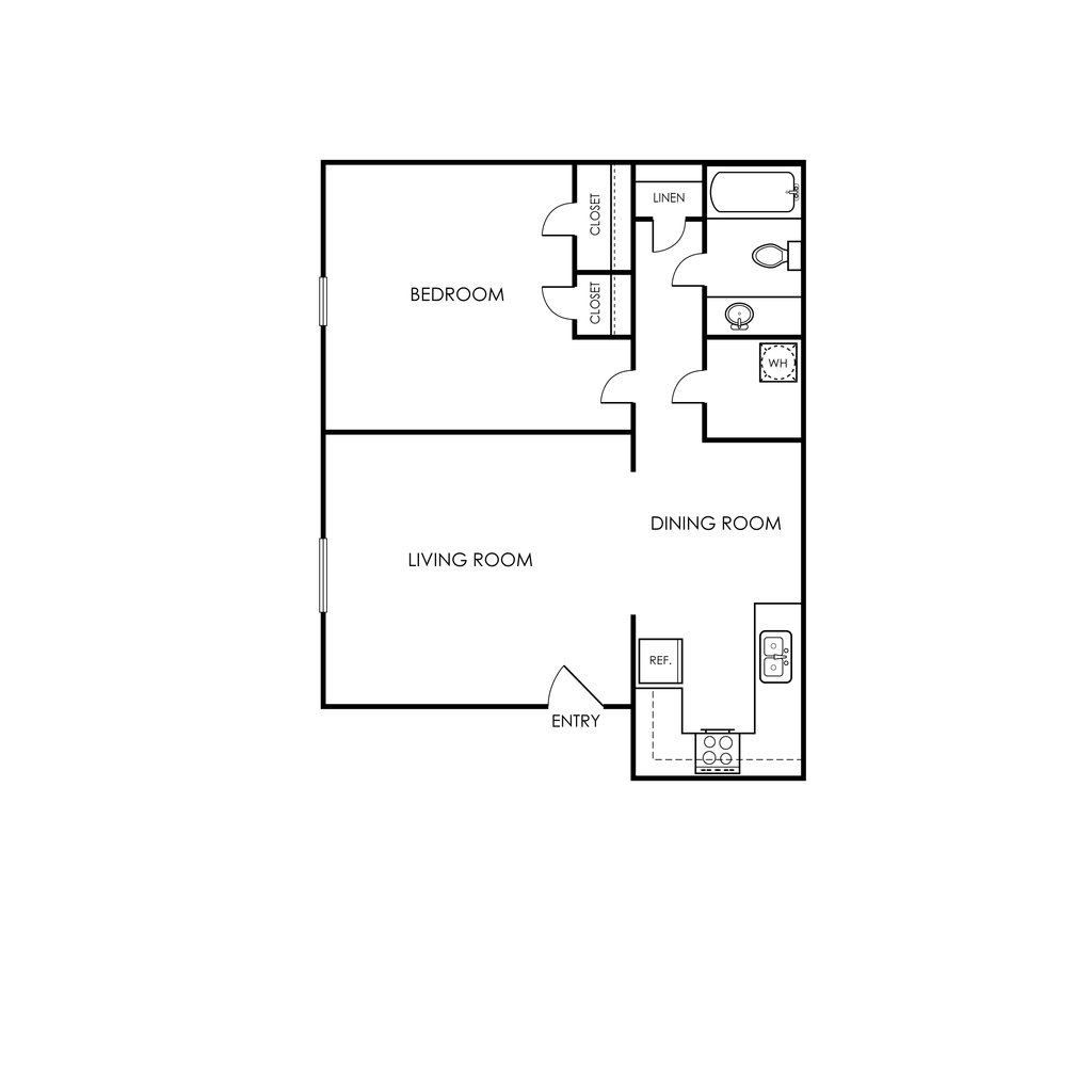 Modelo de apartamento: A1Desde $1,0001 Dormitorio, 1 Baño, 691 sq ftDisponible Ahora![]()