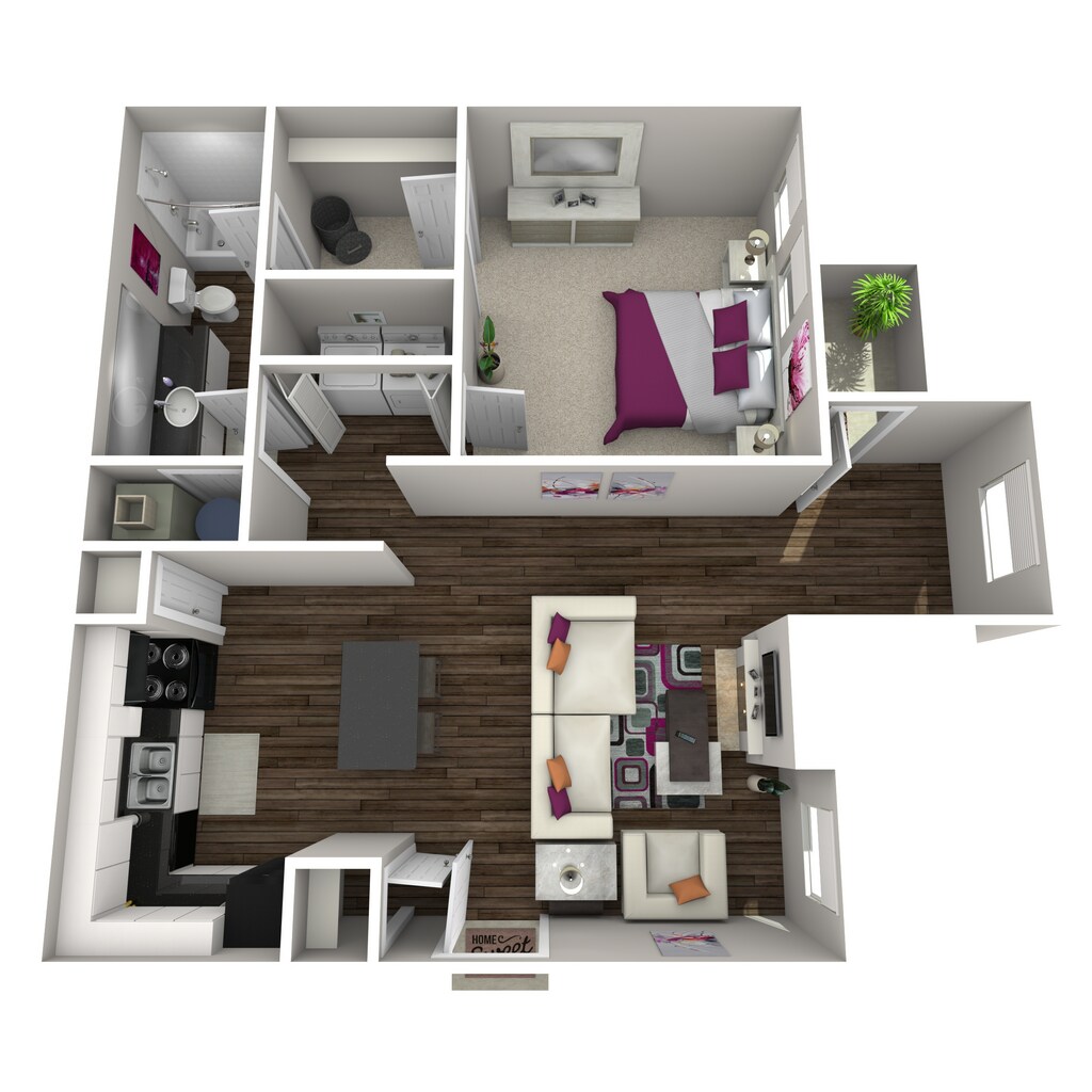 1 Dormitorio, 1 Baño, 800 pies²Disponible AhoraGalería del Modelo