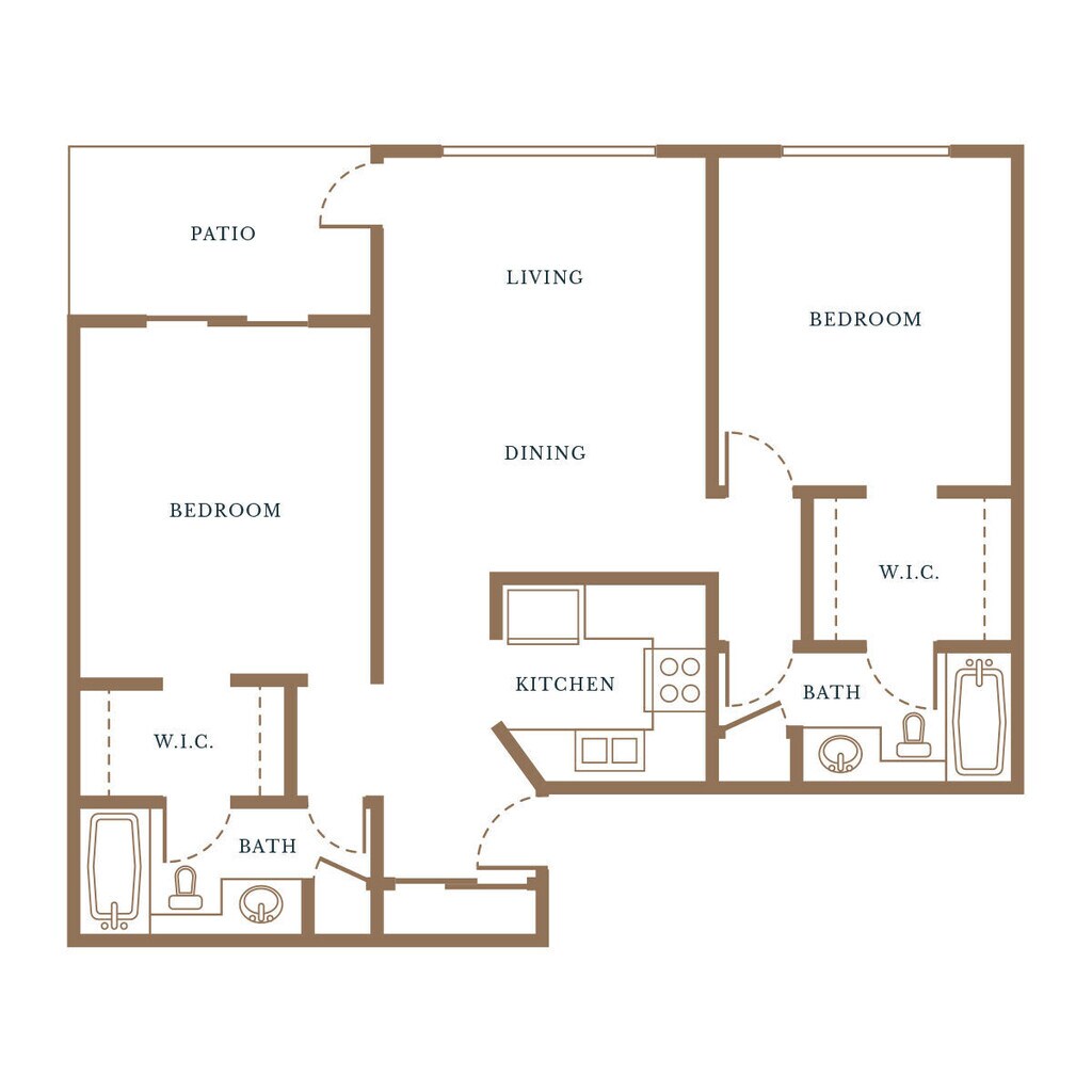 2 Dormitorios, 2 Baños, 940-945 pies²Precio Mensual TotalDisponible AhoraGalería del Modelo