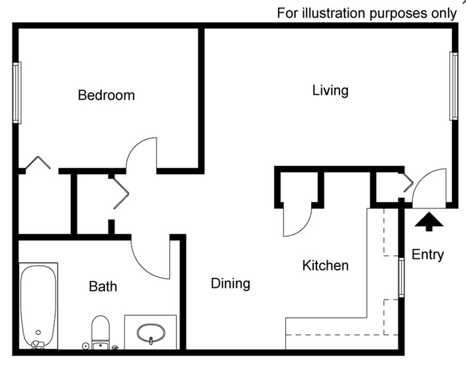 1 Dormitorio, 1 Baño, 750 pies²Disponible AhoraGalería del Modelo