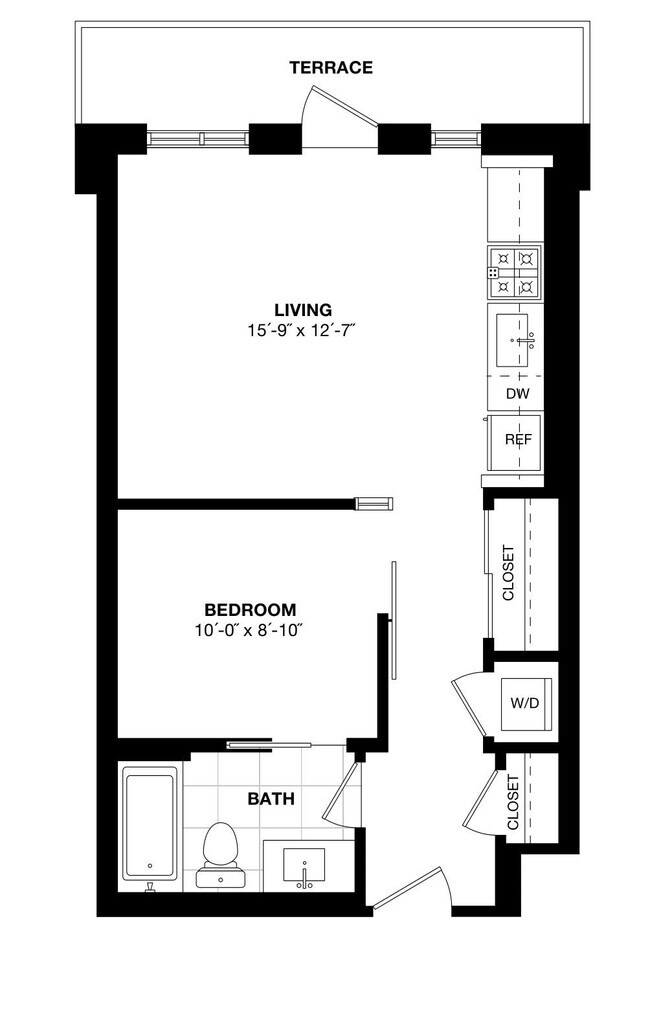 1 Dormitorio, 1 Baño, 689 pies²Disponible AhoraEl más grandeEsta opción tiene las unidades más grandes para este modeloGalería del Modelo