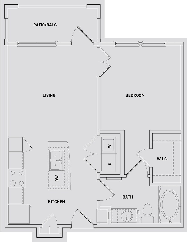 1 Dormitorio, 1 Baño, 600 pies²Disponible AhoraGalería del Modelo