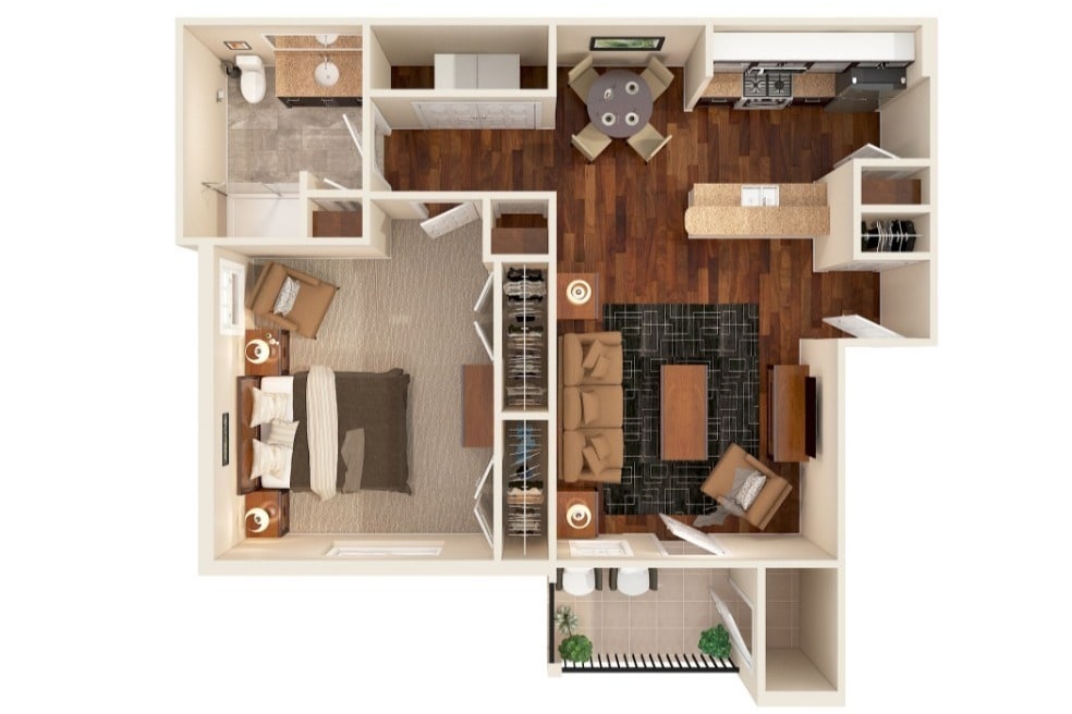 1 Dormitorio, 1 Baño, 760 pies²Disponible AhoraGalería del Modelo