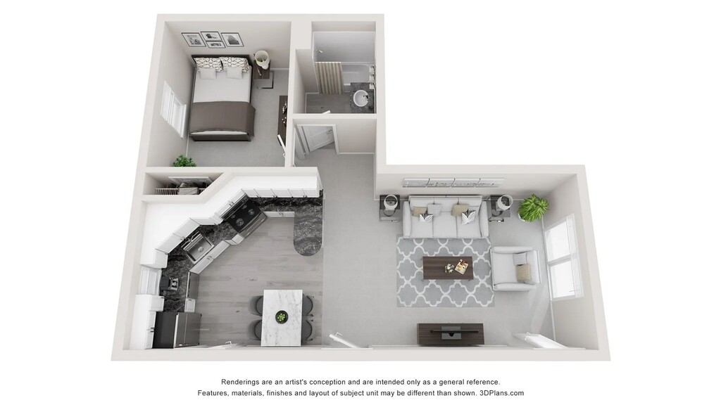1 Dormitorio, 1 Baño, 550 pies²Disponible AhoraGalería del Modelo