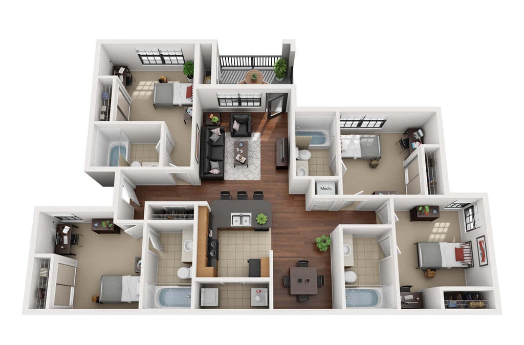 Modelo de apartamento: Final Four4 Dormitorios, 4 Baños, 1365 sq ftNo DisponiblePlanosFotos![]()