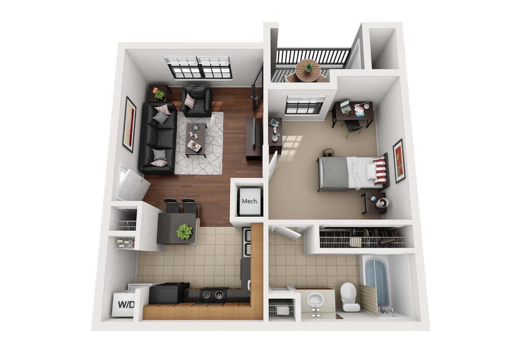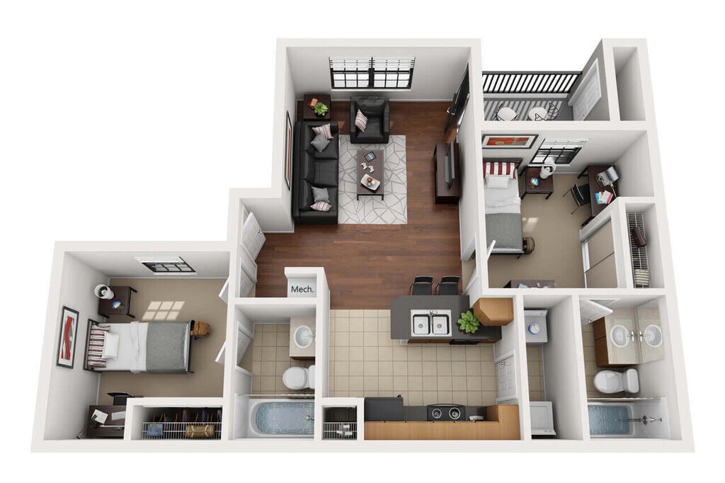 Modelo de apartamento: Tripple Threat3 Dormitorios, 3 Baños, 1089 sq ftNo Disponible![]()