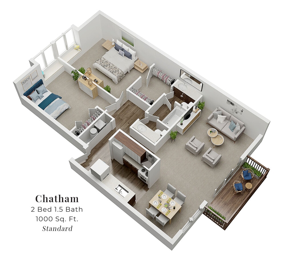 Chatham - Imagen 9 Unidad de apartamento: 1421-302Modelo de apartamento: Chatham2 Dormitorios, 1.5 Baños, 1000 sq ftDisponible July 10, 2026Chatham+
