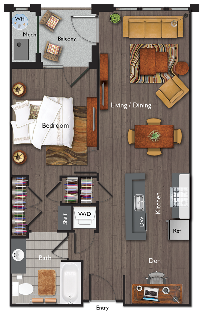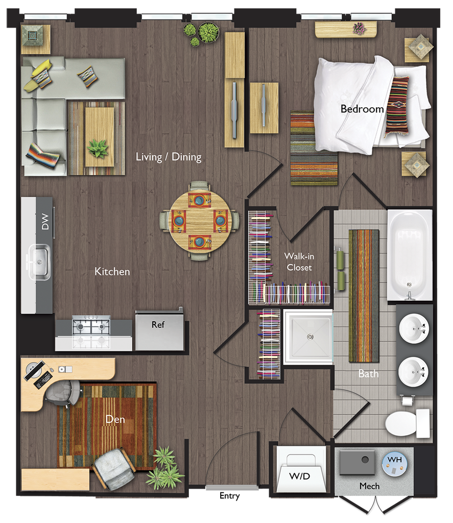 Modelo de apartamento: One bedroom/One Bathroom with Den (B03)Desde $3,1671 Dormitorio, 1 Baño, 886 sq ftDisponible Ahora![]()