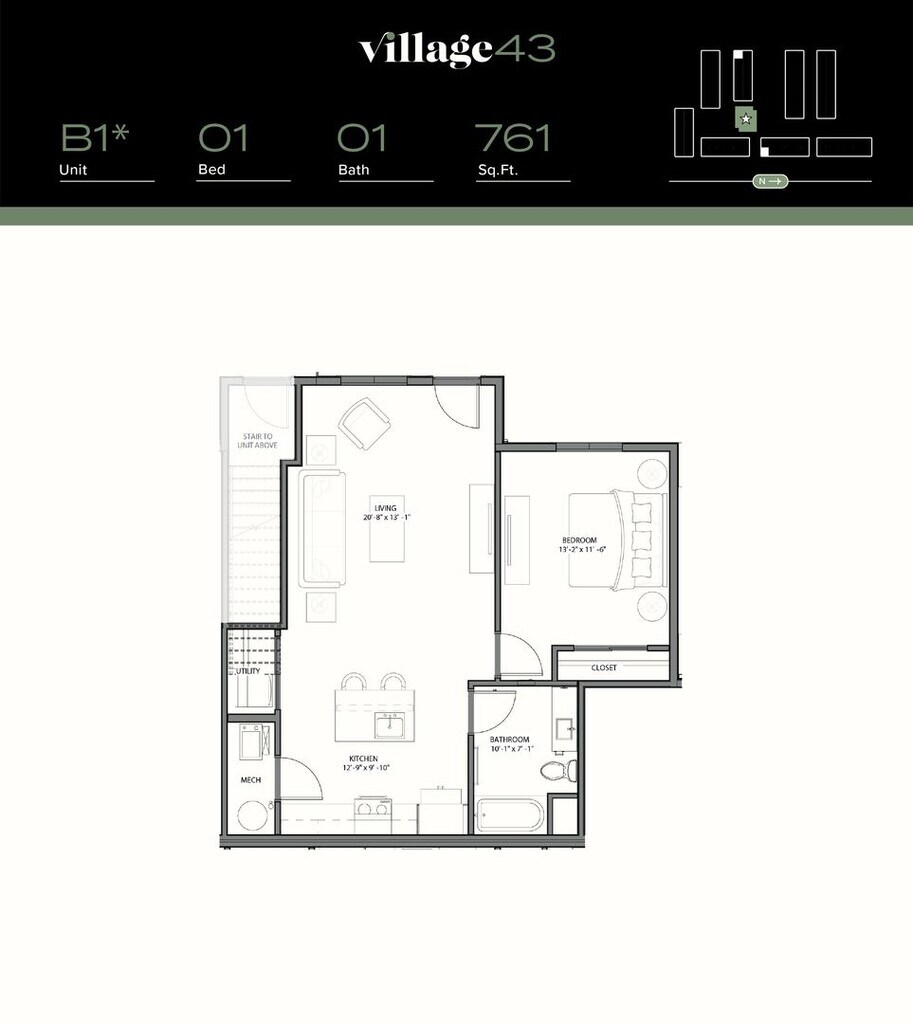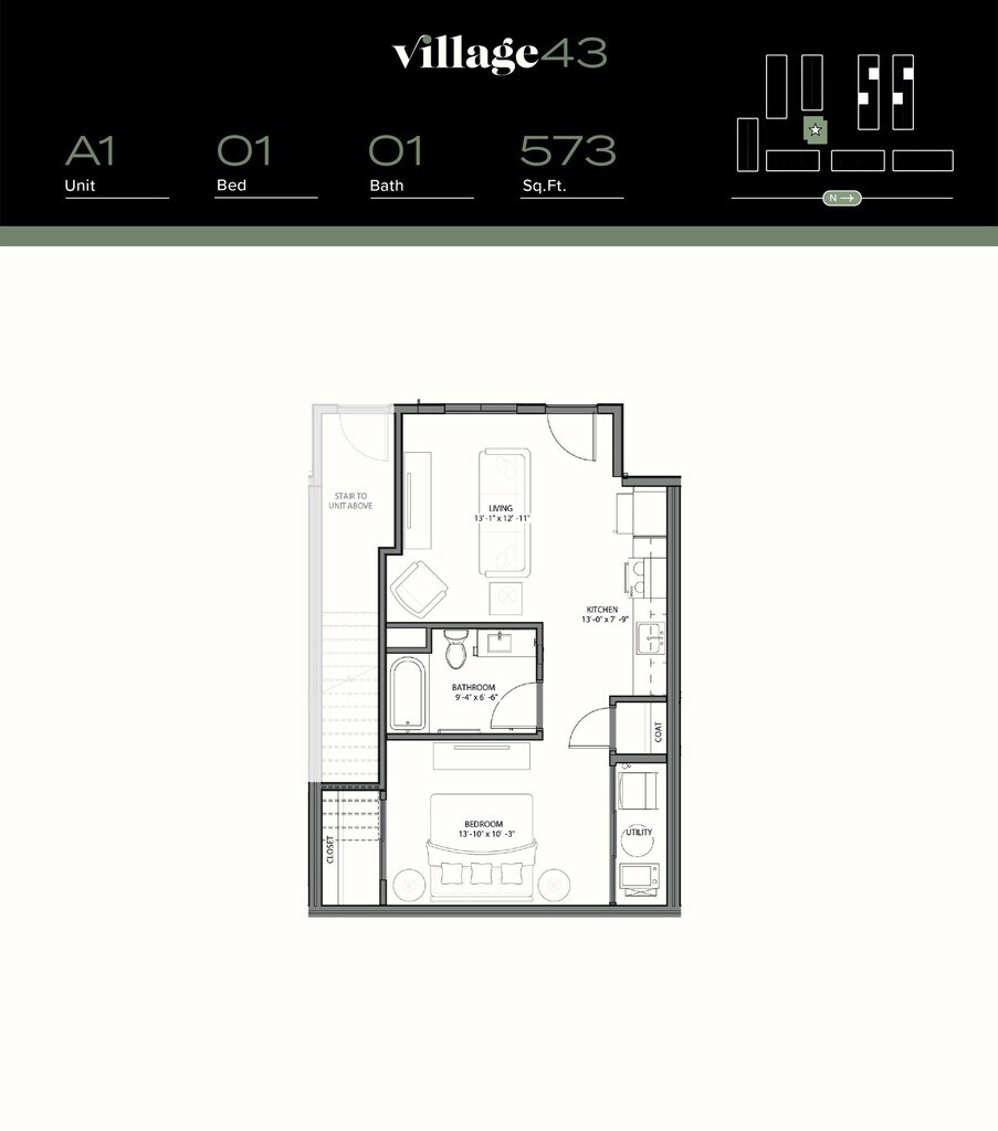 Village 43 ofrece apartamentos de Estudio a 3 Dormitorios desde $1,375 con 573–1,561 pies cuadrados. Aquí está el precio actual y la disponibilidad: