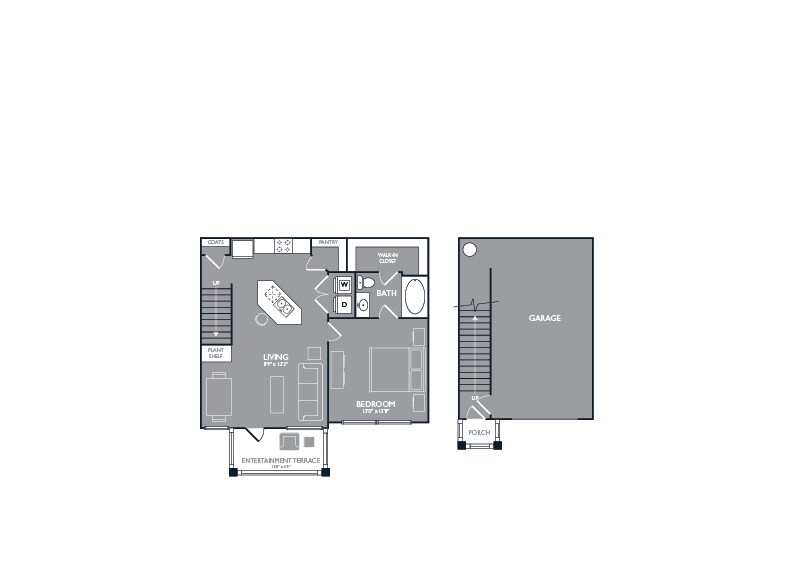 Modelo de apartamento: A1Desde $1,2321 Dormitorio, 1 Baño, 750 sq ftDisponible AhoraLos planos son representaciones artísticas. Todas las dimensiones son aproximadas. El producto y las especificaciones reales pueden variar en tamaño o detalle. No todas las características están disponibles en cada vivienda en alquiler. Por favor, consulta con un representante para obtener más detalles.
