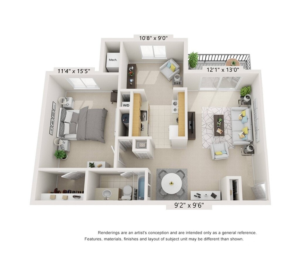 1 Dormitorio, 1 Baño, 829 pies²Disponible AhoraGalería del Modelo