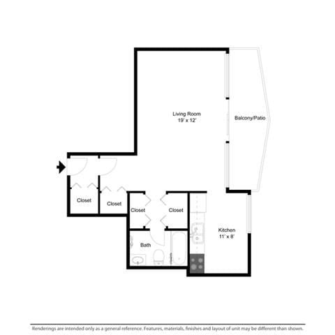 Estudio, 1 Baño, 394-440 pies²Disponible AhoraGalería del Modelo