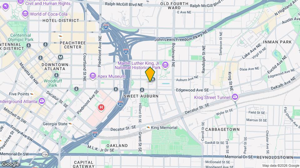Wheat Street Towers Retirement Apartments se encuentra en el Barrio Sweet Auburn y el código postal 30312 de Atlanta, GA.