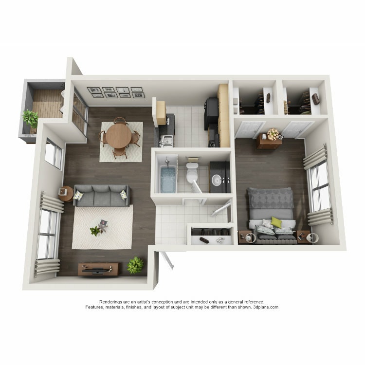 Modelo de apartamento: Flat 1-1 A4Desde $6751 Dormitorio, 1 Baño, 740 sq ftDisponible Ahora![]()