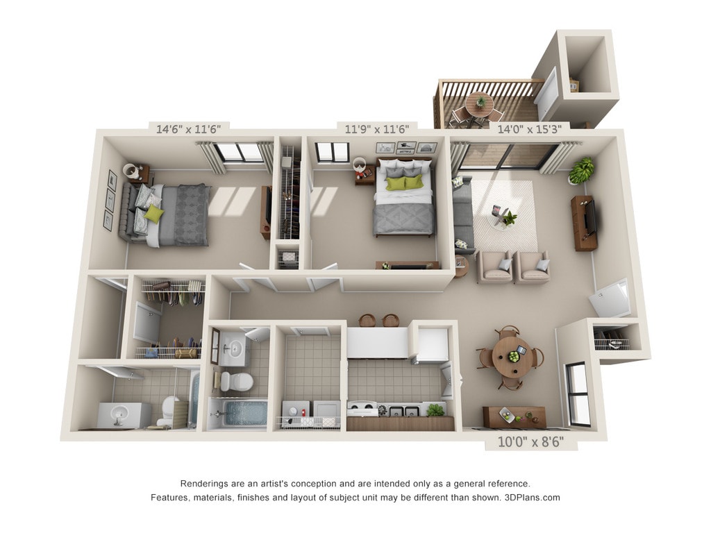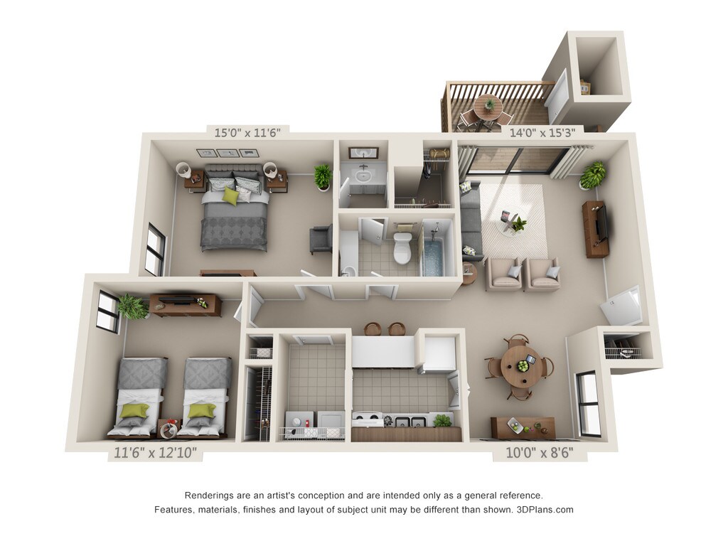 Modelo de apartamento: 2 Bed 2 Bath Garden BLlame para Precios2 Dormitorios, 2 Baños, 1069 sq ftNo Disponible2 Bed 2 Bath Garden B - Plano 1 3 Dormitorios