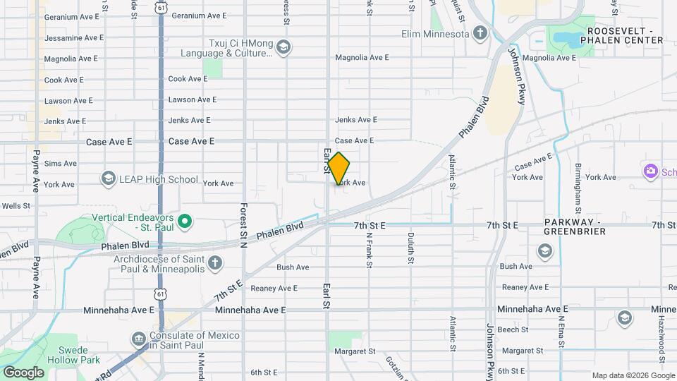 York Ave se encuentra en el Barrio Payne-Phalen y el código postal 55106 de St. Paul, MN.