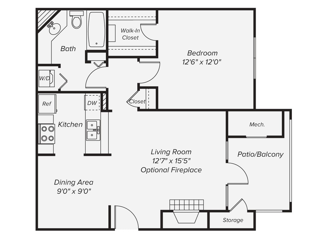 1 Dormitorio, 1 Baño, 735 pies²Disponible prontoGalería del Modelo
