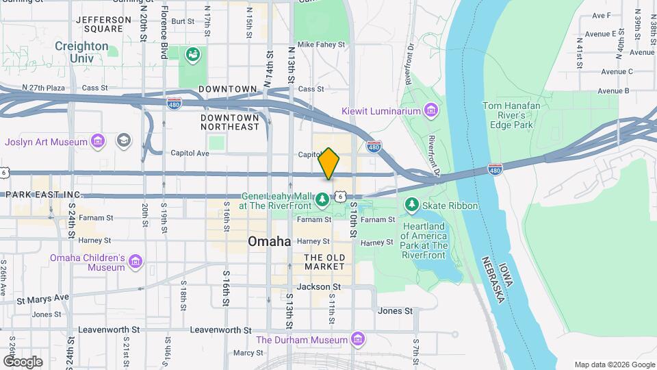 110 S 11th St has 2 parks within 0.6 miles, including Heartland of America Park, and Gene Leahy Mall.