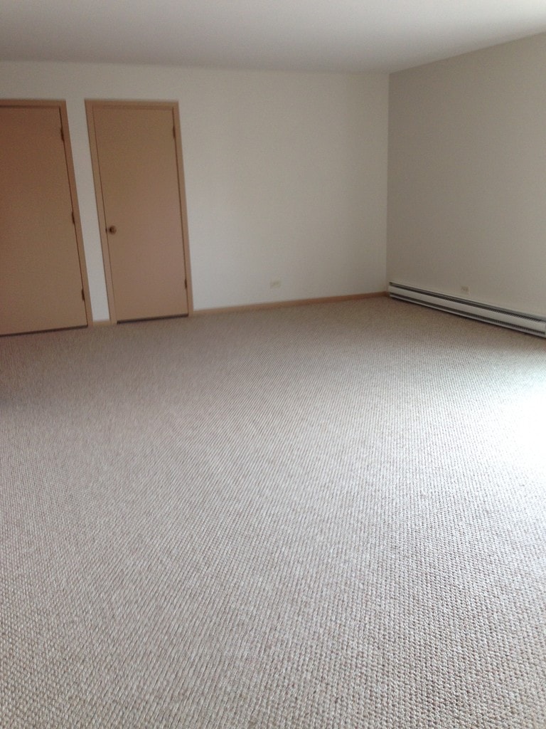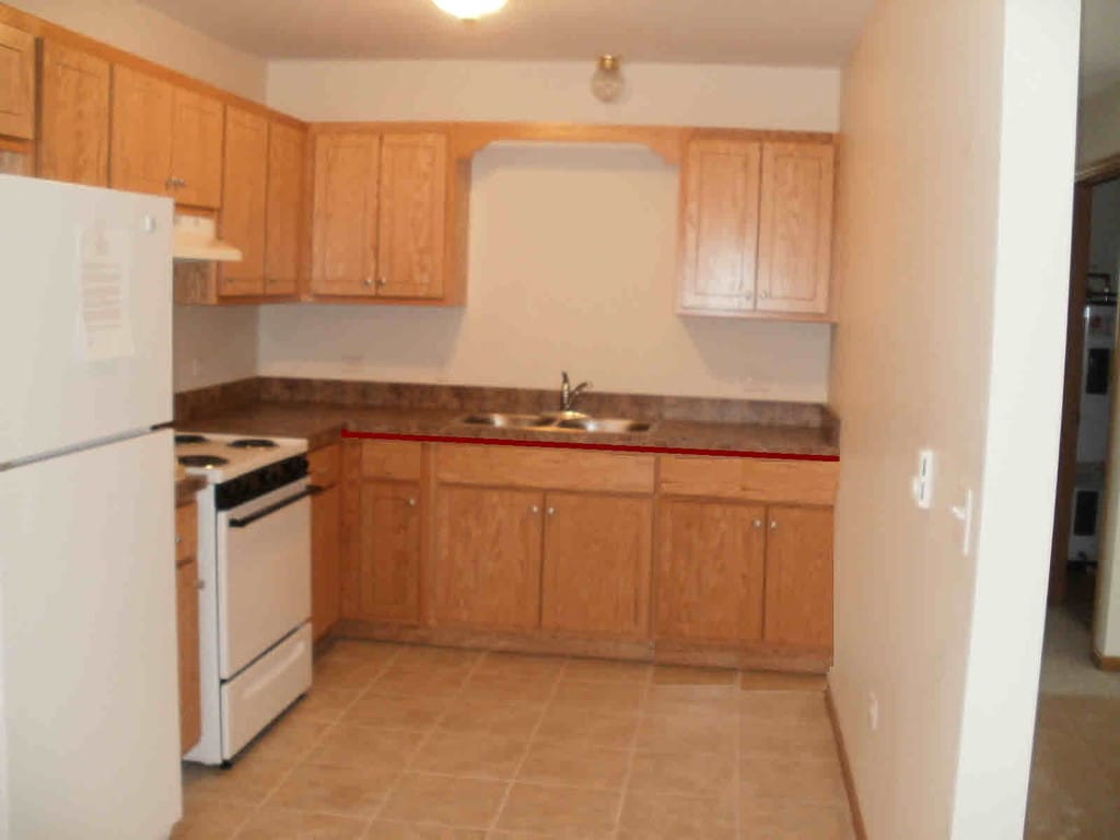 This large 1000 square foot Apt with attached garage (extra $100/month)is located on the 2nd floor with 10' x 10' storage closet. Two bedroom, one bath apt with living room, dining area, kitchen. Includes stove, refrigerator, air conditioning & coin operated laundry facilities. Tenant pays for all electric (heat), cable TV (Satellite dishes are prohibited!) and Phone. We pay for garbage collection, sewer & water, cutting grass, plowing snow and all interior & exterior maintenance. Unit is professionally painted and cleaned. Security deposit is typically $1080 but if you have a dog or cat the security deposit is $2,160. It is refundable at the end of the lease if no damage.