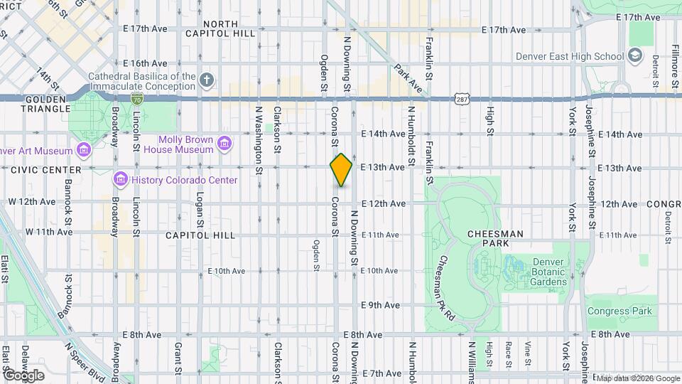 1228 N Corona St has 5 parks within 1.2 miles, including Molly Brown House Museum, Denver Botanical Gardens, Denver Botanic Garden, Colorado History Museum, and Civic Center Park.