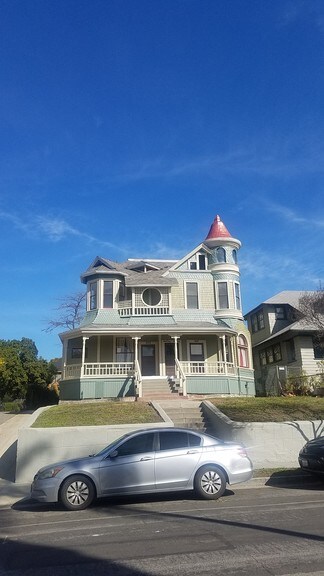 Charming Two-bedroom flat available in a landmark Queen Anne Victorian house! Notable features include hardwood floors, high ceilings, built-in storage, and incredible panoramic downtown LA views. LA Landmark No. 191 - Luckenbach House http://bigorangelandmarks.blogspot.com/2008/10/no-191-luckenbach-house.html