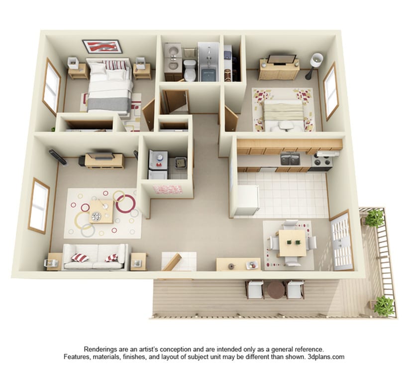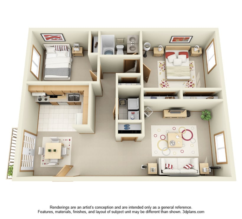 2 Beds, 1 Bath, 1000 sq ftModel Gallery